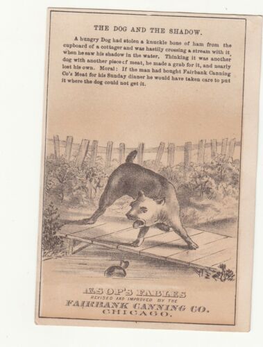 Title (ebay affiliate link): Fairbank Canning Co Chicago Aesop''s Fables DOG AND SHADOW Vict Card c1880s