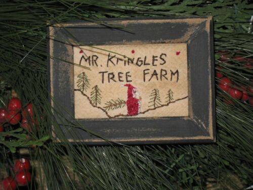 Primitive tiny Sampler~Mr. Kringles Tree Farm~Early Christmas~ Folk Art Santa