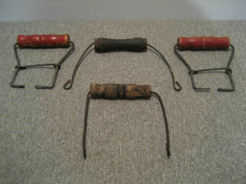 ANTIQUE VINTAGE CROCK JAR JUG WIRE & WOOD BAIL HANDLES ONLY LOT OF 4 FREE SHIP