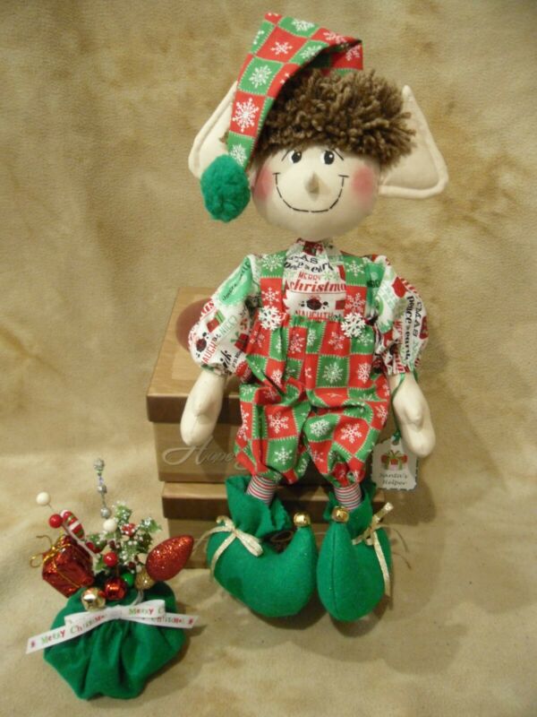 PRIMITIVE HANDMADE CHRISTMAS ELF DOLL SHELF SITTER