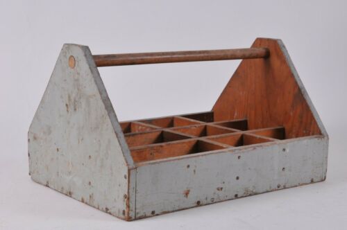 Title (ebay affiliate link): ANTIQUE WOOD TOOL/HARDWARE TOTE CARRIER in ORIGINAL BLUE PAINT