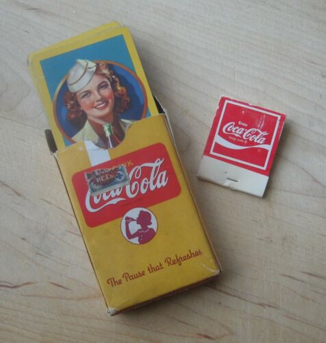 VTG 40s COCA COLA PLAYING CARDS "Delicious & Refreshing" also Match Book(full)