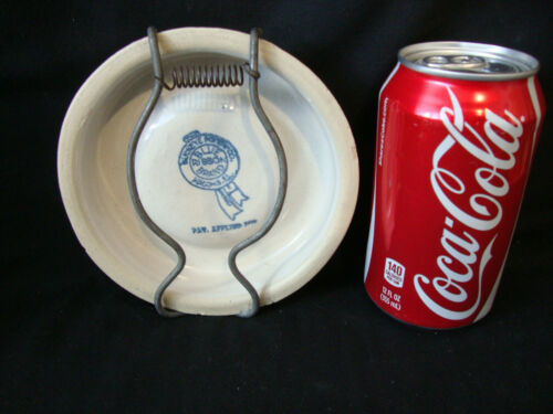 Title (ebay affiliate link): Vintage Buckeye Pottery Blue Ribbon Brand Stoneware Chicken Waterer Base