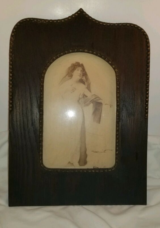 Antique Handmade Wooden Picture Frame with Beaded Embellishments and Gold Paint
