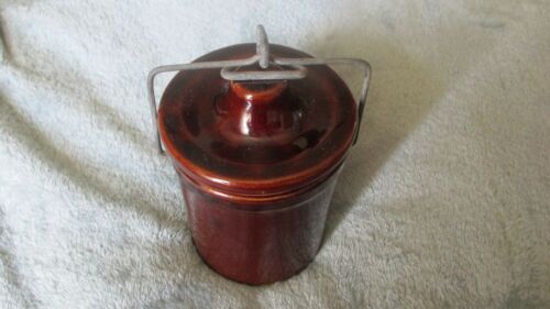 Vintage Small Stoneware Cheese Crock with Lid Wire Bail Rubber Ring