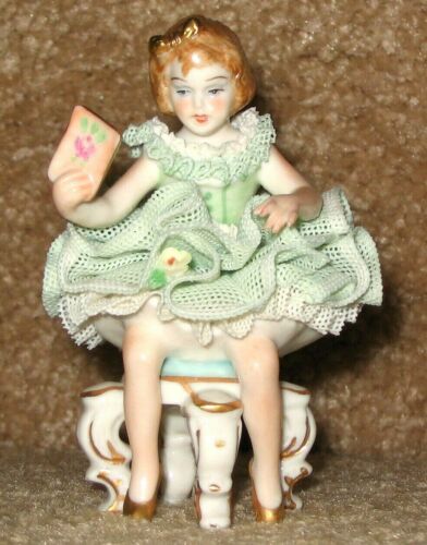 Title (ebay affiliate link): Irish Dresden Porcelain Figurine "Julia" Girl Lace Skirt, Emerald Collection