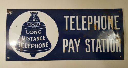Vintage Telephone Pay Station Long Distance Porcelain Sign