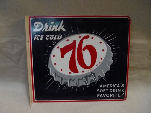 Title (ebay affiliate link): Vintage DRINK ICE COLD 76 America''s Favorite 2-Sided Advertising Flange Sign
