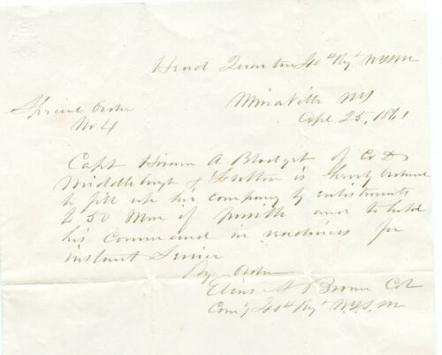 Title (ebay affiliate link): Civil War Orders Capt Blodget 4.25.1861 to enlist 50 men Co D NY 76th Col Brown