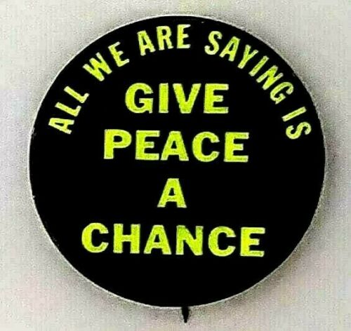 Title (ebay affiliate link): JOHN LENNON-ANTI WAR PIN ALL WE ARE SAYING IS GIVE PEACE A CHANCE-1969 -YELLOW