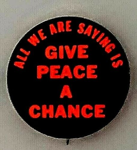 Title (ebay affiliate link): ALL WE ARE SAYING IS GIVE PEACE A CHANCE.1969 JOHN LENNON ANTI WAR PIN - ORANGE