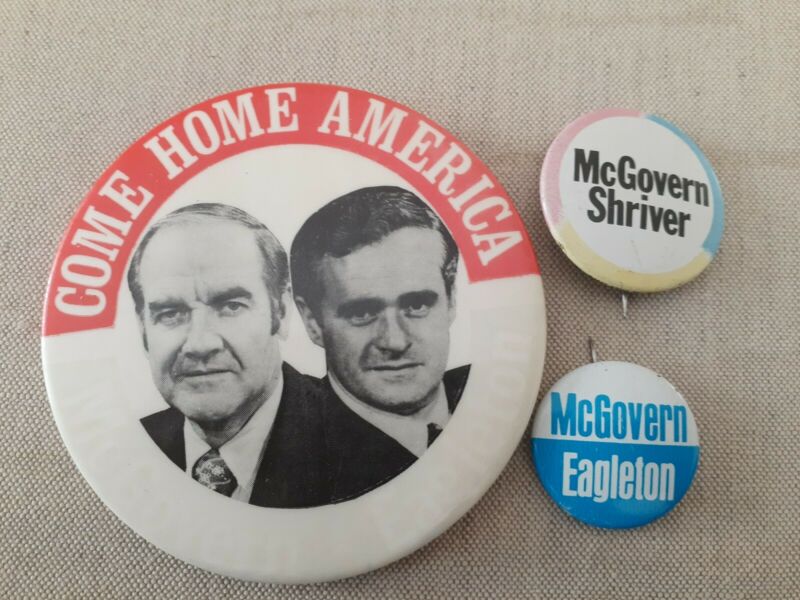Title (ebay affiliate link): 3 GEORGE MCGOVERN, SHRIVER, EAGLETON presidential campaign pin pinback buttons