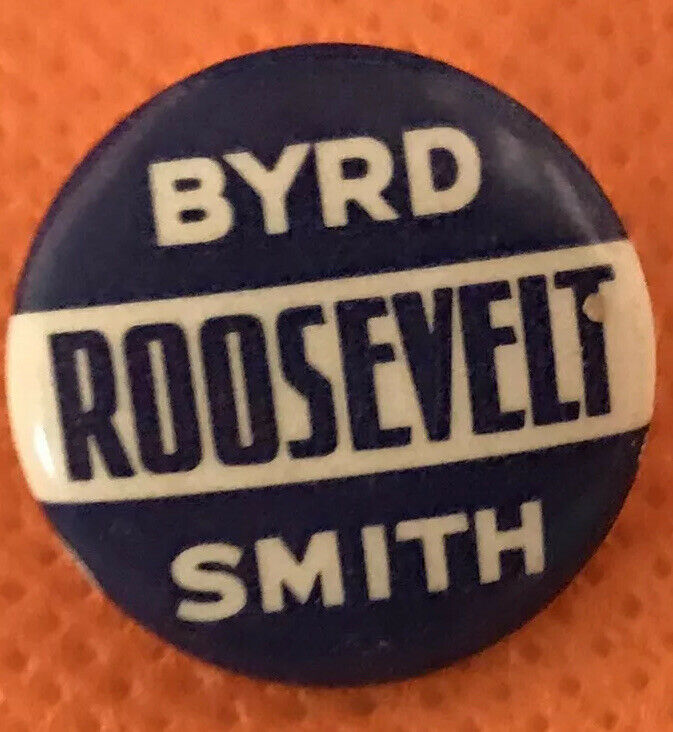 FDR VA Coattail FD ROOSEVELT Button Political PinBack BYRD SMITH Pin Advertising