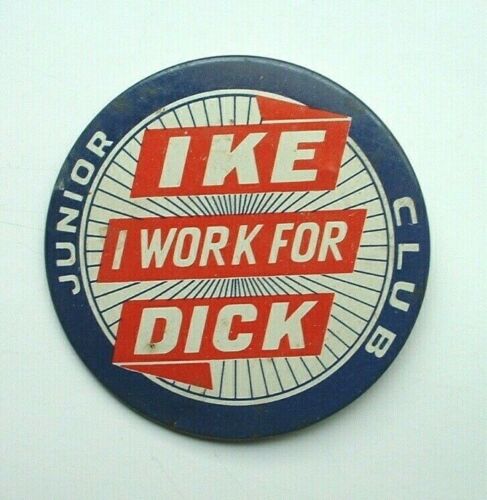 Title (ebay affiliate link): 1950''s Vtg Political Campaign Pinback I WORK FOR IKE DICK Junior Club Eisenhower