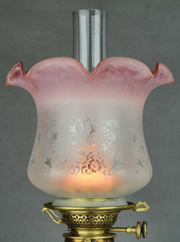 Vianne / Christopher Wray Pink Glass Kerosene Paraffin Duplex Oil Lamp Shade