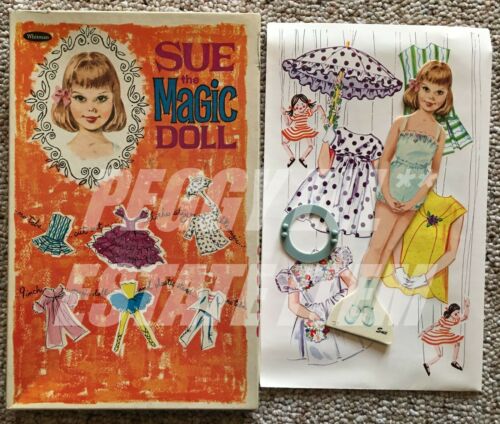 Title (ebay affiliate link): 1964 WHITMAN "SUE THE MAGIC DOLL" STAY-ON CLOTHES UNCUT w/BOX & STAND NO.4618