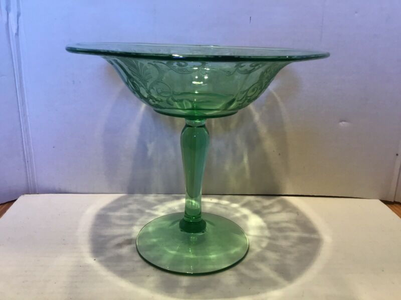 Elegant Green Depression Glass Stemmed Bowl. Candy/ Nut Dish.