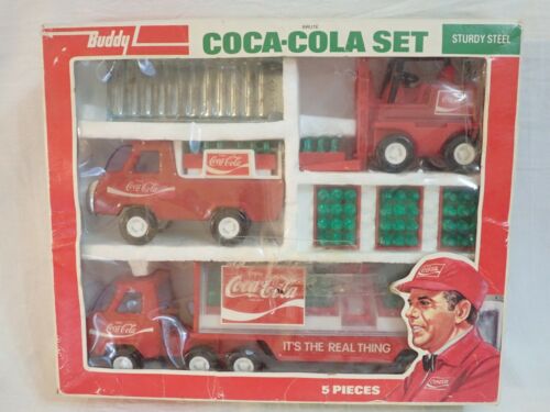 VINTAGE 1970''s PRESSED STEEL BUDDY L COCA-COLA COKE TOY TRUCK DELIVERY SET 4973