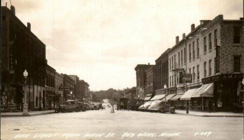 Antique RPPC Postcard Red Wing MN "Bush Street" Coca-Cola Sign Cars