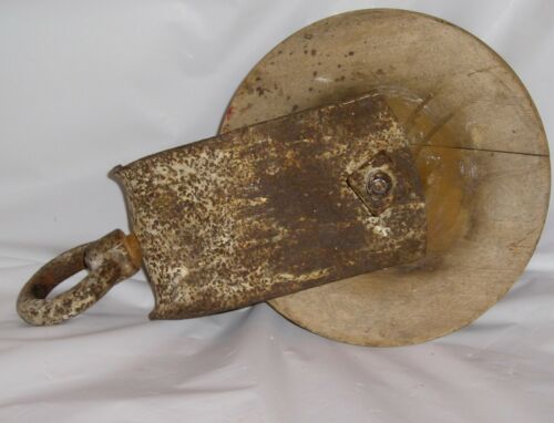Title (ebay affiliate link): Antique Primitive Wood & Metal Barn Pulley - About 6" Diameter x 1 1/2" Wide