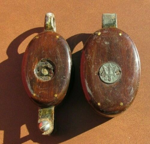 Title (ebay affiliate link): 2 Merriman Brothers wood block and Tackle Pulley MB 1/2 & 3/4 inch snatch