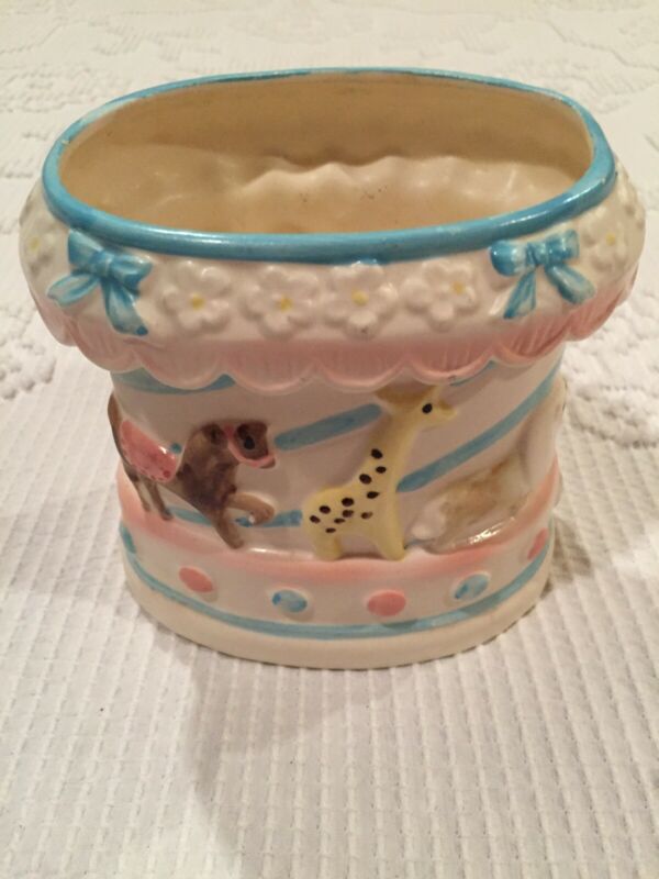 Vintage 1962 Pink And Blue Baby Ceramic Planter Samson Import Giraffe Bunny Etc