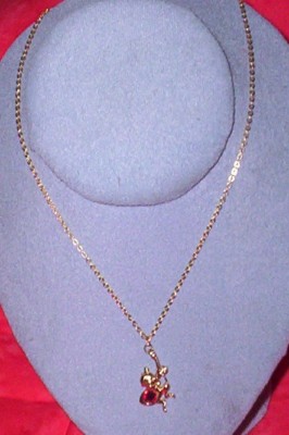 Title (ebay affiliate link): DISNEY GOLDTONE CHAIN NECKLACE WITH ABU CHARM/RED STONE