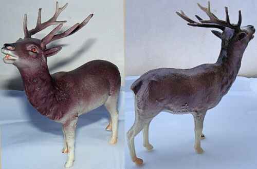 Vntage Celluloid Japan Brown Xmas Reindeer Antlers Deer Buck Red Rhinestone Eyes
