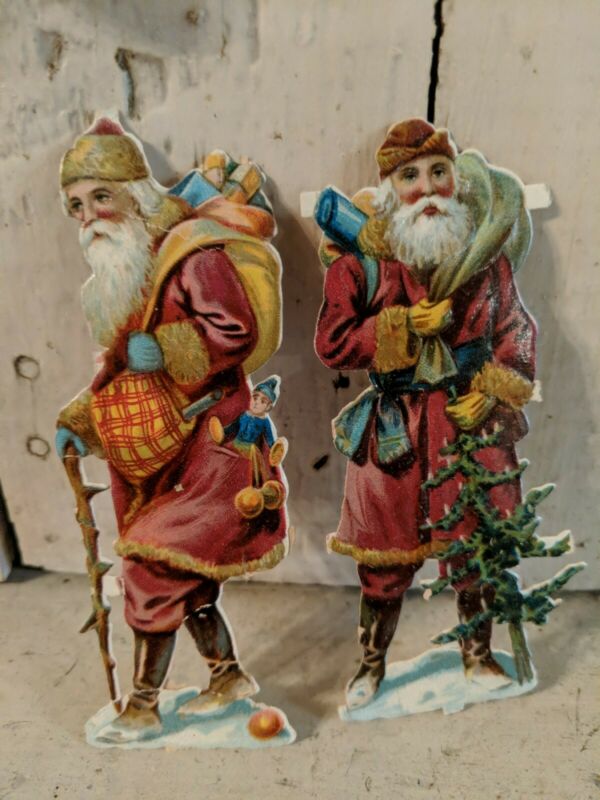Title (ebay affiliate link): Lot of 2 German Victorian Antique 4" Embossed Christmas Die-Cut Santa Toys Tree