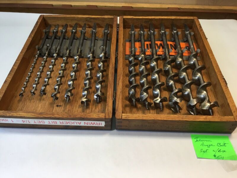 Title (ebay affiliate link): Vintage Irwin Auger Brace Bit Set Wooden Box 13pcs Carpenter Woodworking 4-16