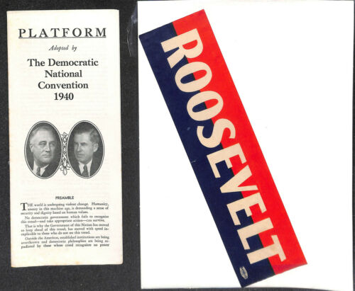 Set of 2 Franklin Roosevelt for Pres., Wallace for VP Campaign Fliers & Sticker