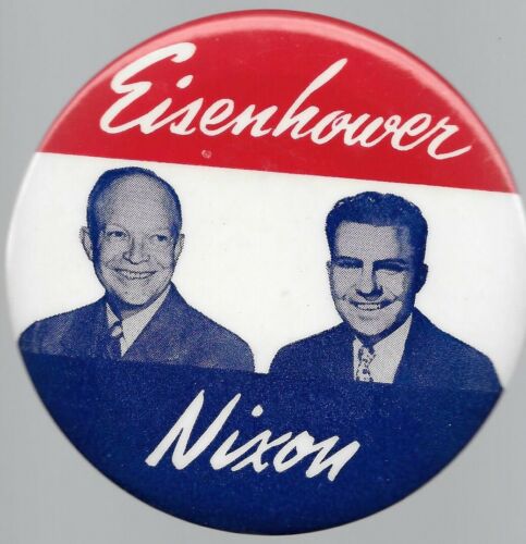 Title (ebay affiliate link): DWIGHT EISENHOWER AND NIXON LARGE, SCRIPT LETTERING POLITICAL JUGATE PIN