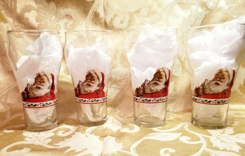 4 Vintage Coca-Cola Coke Libbey Santa Claus Glasses 16oz Snowflake Holly holiday