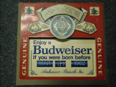 Title (ebay affiliate link): BUDWEISER SIGN - born before 1962 - plastic - NR