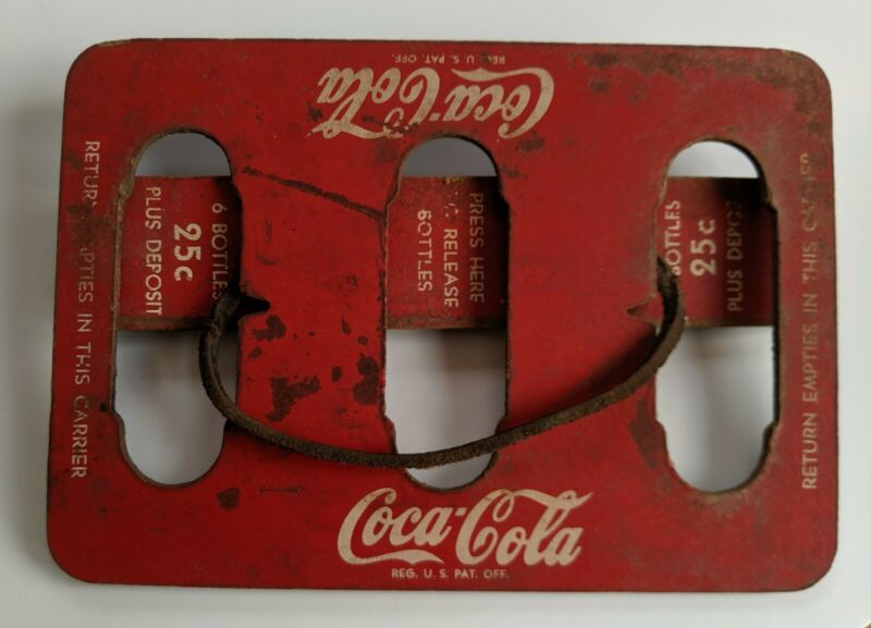 Title (ebay affiliate link): Early COCA COLA masonite 6 Pack Bottle Carrier with leather strap. Coke carrier