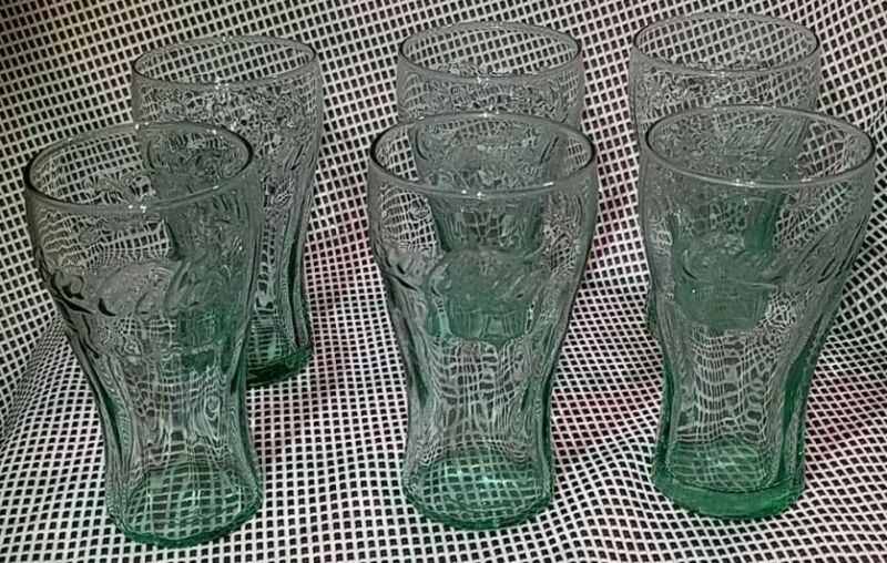Title (ebay affiliate link): Vintage Set of 6 Libbey Mini Coca Cola Coke Glasses 4 3/8" Green Tinted 6.25oz