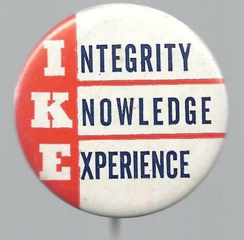 Title (ebay affiliate link): EISENHOWER, IKE INTEGRITY, KNOWLEDGE, EXPERIENCE POLITICAL PIN