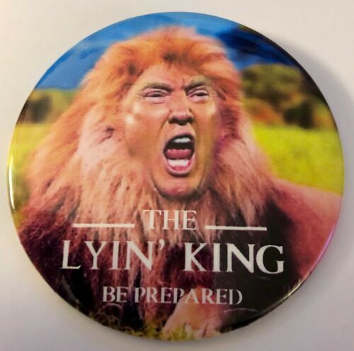 Title (ebay affiliate link): Creative 3" Anti-Trump "The Lyin'' King" Be Prepared Pin
