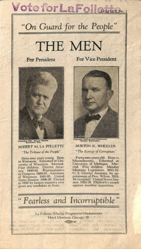 Robert LaFollette & Burton Wheeler Progressives for President Campaign Flier