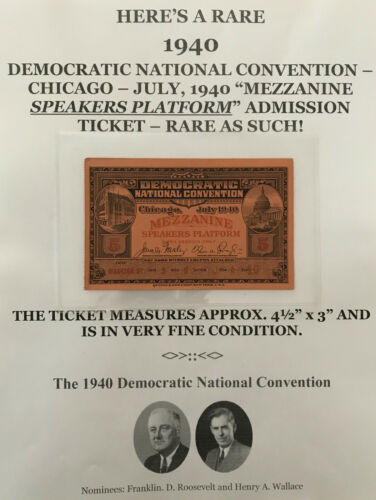 Title (ebay affiliate link): 1940 DEMOCRATIC NATIONAL CONVENTION PRESIDENT ROOSEVELT SPEAKERS PLATFORM TICKET