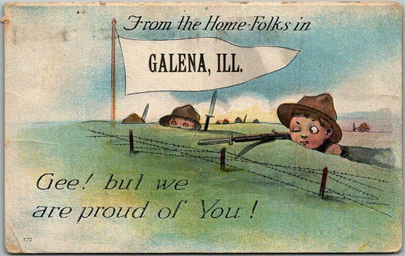 Vintage GALENA Illinois Postcard "From the Home Folks" Soldiers WWI 1918 Cancel