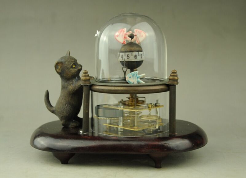 Title (ebay affiliate link): Collectible Decorated Handwork Copper Carved Cat Fish Mechanical Table Clock g02