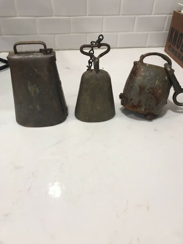 Title (ebay affiliate link): Lot of (3) Antique Vintage Primitive Metal or Brass Cow Bells Lancaster PA