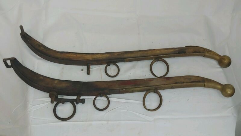 Antique Ox Yoke Wooden Metal Rings Rustic Farm Barn Find - Brass, Wood, Steel