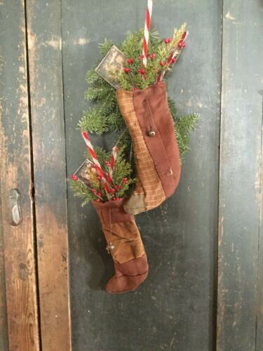 Title (ebay affiliate link): Primitive Christmas Log Cabin Quilt Santa Stocking Ornament
