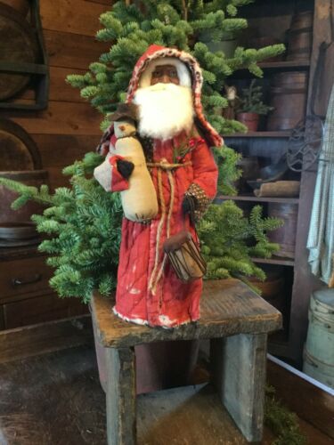 Title (ebay affiliate link): Primitive Christmas Folk Art Red Patchwork Coat Santa Claus-snowman-drum