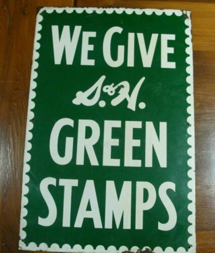 Title (ebay affiliate link): Old looking 18" x 12" S&H Green Stamps Tin Advertising Sign