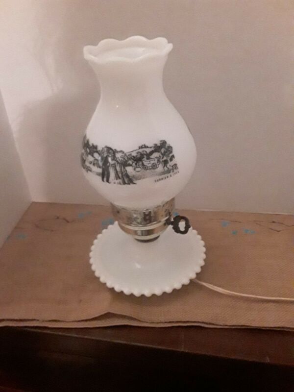 Vintage Currier & Ives Milk Glass signed Underwritters Labratories. Works great