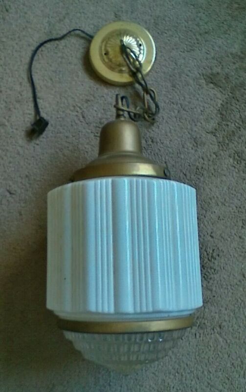 Title (ebay affiliate link): Vintage Art Deco Skycraper Ribbed Milk Glass Ceiling Light