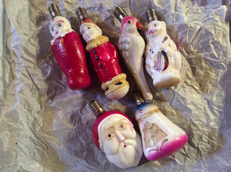 Title (ebay affiliate link): VINTAGE LOT OF 6 FIGURAL MILK GLASS CHRISTMAS HOLIDAY LIGHT BULBS